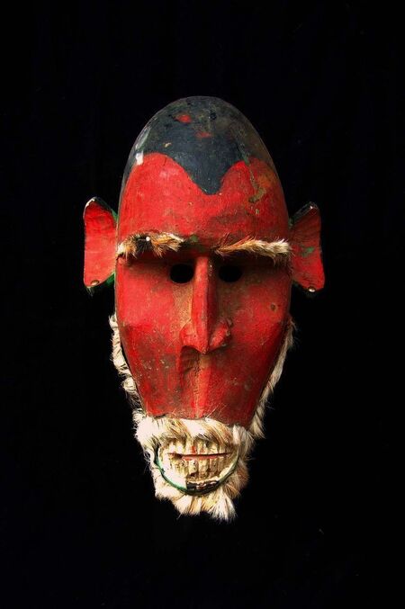 Для украшения масок применяются самые разные природные материалы: раковины каури, перья, слоновая кость, шкуры и кости животных, рога. Встречаются и более редкие детали — например, иглы дикобраза.