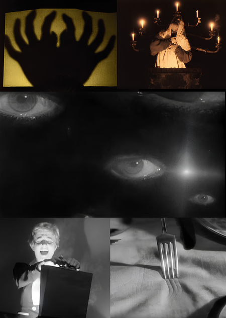 1 — «Кабинет доктора Калигари» 1920 г. режиссер Роберт Вине 2 — «Завороженный» 1945 г. режиссер Альфред Хичкок 3 — «Люди Т» 1947 г., режиссер Энтони Манн 4 — «Голем, как он пришёл в мир»1920 г.