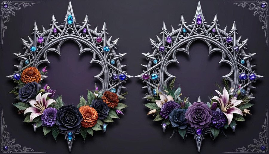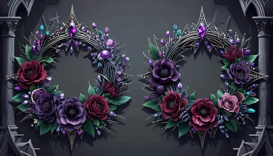 Погребальные венки с блестящими камнями в готическом стиле, 2D нарисованном стиле