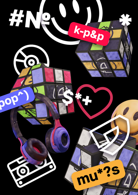 Posters exhibit versatility in format, including both A4 and taller, lengthy dimensions. They consistently combine the 2D and 3D asset approach, demonstrating scalability and brand cohesion across different physical marketing channels. The compelling mix of 2D graphic elements and 3D rendered assets [e.g., a Rubik’s cube, guitar, headphones, cassette tape, microphone, etc.] creates visual depth and emphasizes the brand’s identity as the link between the digital [2D] and real-world [3D] experience.