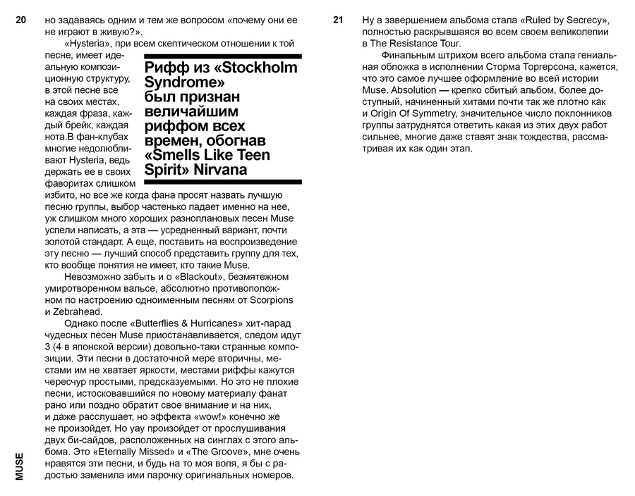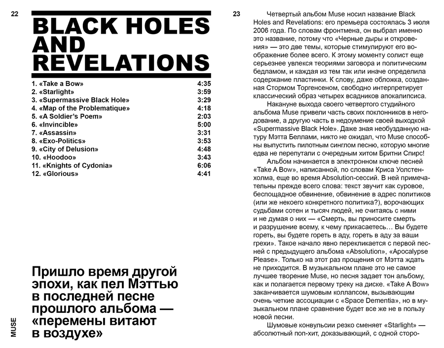 В серию книги входят темы: Творчество MUSE Биография солиста Мэттью Беллами Биография барабанщика Доминика Ховарда