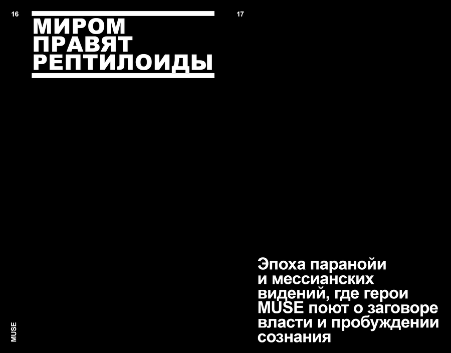 Концепция покетбука о MUSE Дискография, разбор музыкального направления, в котором двигалась группа в момент написания альбомов. Использоваться будут строгие геометрические формы и дополнительные приёмы в зависимости от альбома.