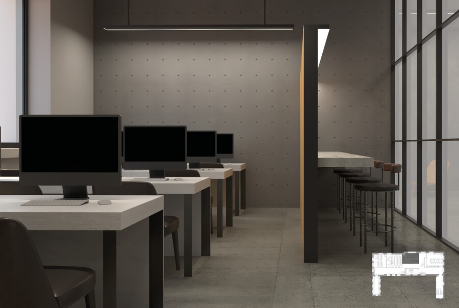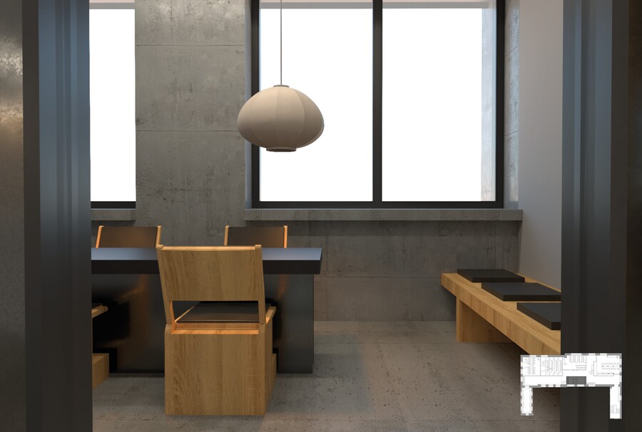 Интерьер проектировался для креативного пространства, где важно сосредоточиться, но при этом чувствовать себя комфортно. Без лишних деталей, где каждая форма имеет смысл, а несовершенство становится частью гармонии. Вдохновлен стилем ваби-саби, который сочетает в себе все выше перечисленное.