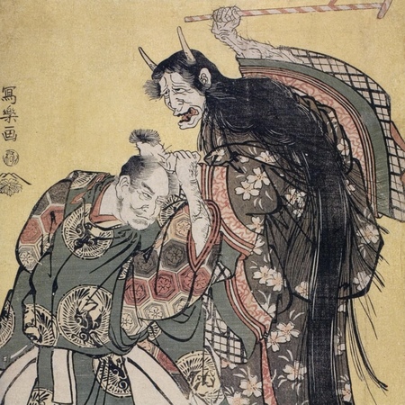 Говорят, чтобы стать великим мастером укиё-э, Хокусай молился в храме бодхисаттве Мёкэну 21 день. Когда он возвращался из храма на 21-й день, небо потемнело, и в Хокусая ударила молния. Он упал посреди рисового поля и с того момента начал преуспевать.