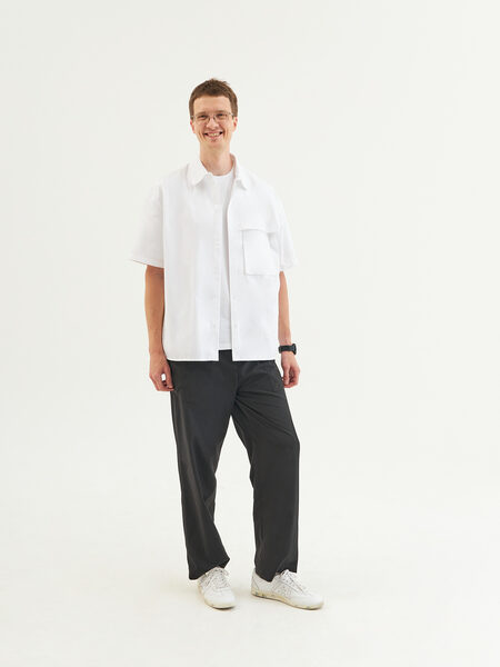 «Многие мои базовые луки, особенно для работы, от GATE31. Они лаконичные, обычно черно-белые, без каких-то сложных решений. Особенно нравятся черные вещи бренда. GATE31 — это хороший черный. Первым изделием бренда в моем гардеробе была рубашка: чёрная, легкая, оверсайз.»