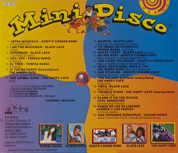 Также важно отметить, что музыка мини-диско, это не упрощённая взрослая музыка, это самостоятельные работы, написанные специально для этого жанра. Одним из наиболее известных авторов является Тереса Рабаль. Она обрела известность как автор детских песен в этом жанре, среди которых «Veo Veo» («Вижу, вижу») и «El Tren» («Поезд»). Летом 2004 г. поп-банд Hot Banditoz выпустил кавер-версии этих двух песен, при этом первая заняла в немецких музыкальных чартах 3-е место.