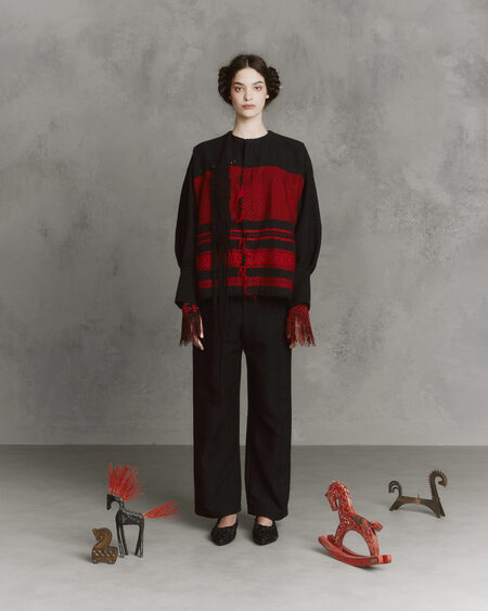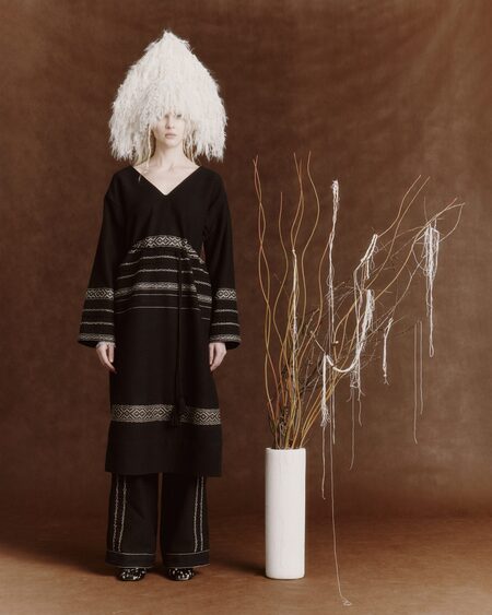 Бренд Kichka в свой коллекции Оберег сконцентрировался на узорно-ремизном ткачестве.