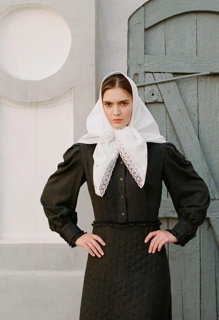 Александра Гапанович часто обращается в своих коллекциях к теме памяти. В том числе и через обращение к традиционным промыслам.