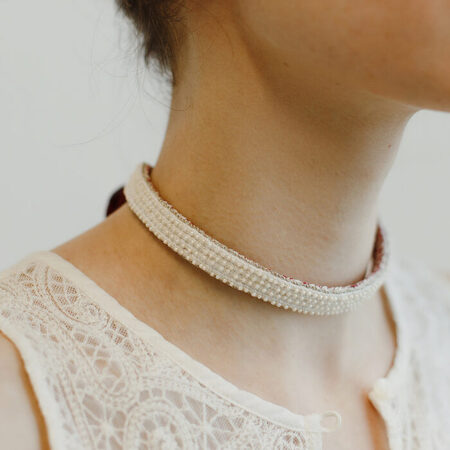 В технологическом плане, на полотно, по заранее подготовленному рисунку, наносилась сначала вышивка (та самая бель), а затем уже бусины, жемчужины. За счет многослойности вышивка получалась объемной.
