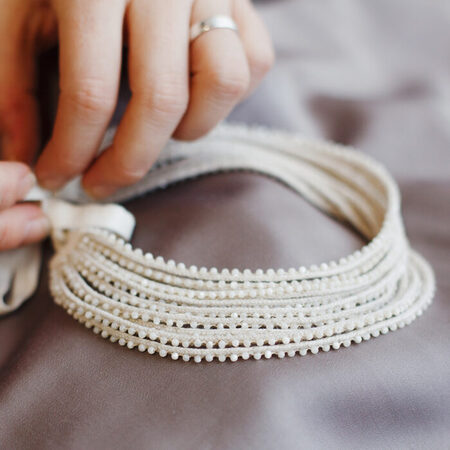 По технологии, кружево плетется на специальных приспособлениях — коклюшках — по заранее заготовленному рисунку.