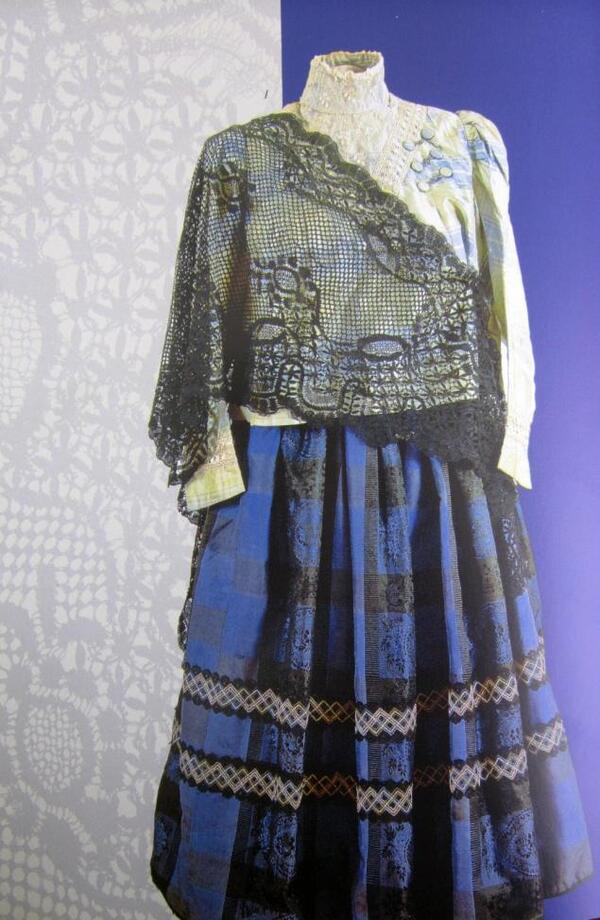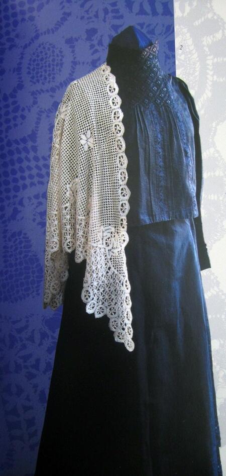Городской костюм с балахнинской кружевной шелковой шалью. Конец XIX-начало XX в. Балахнинский