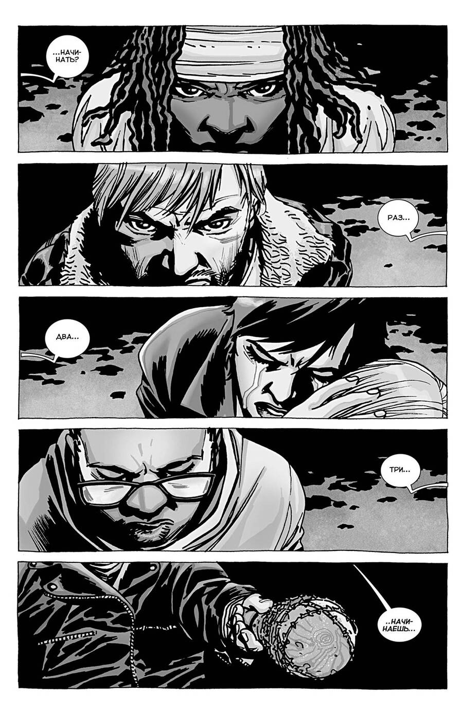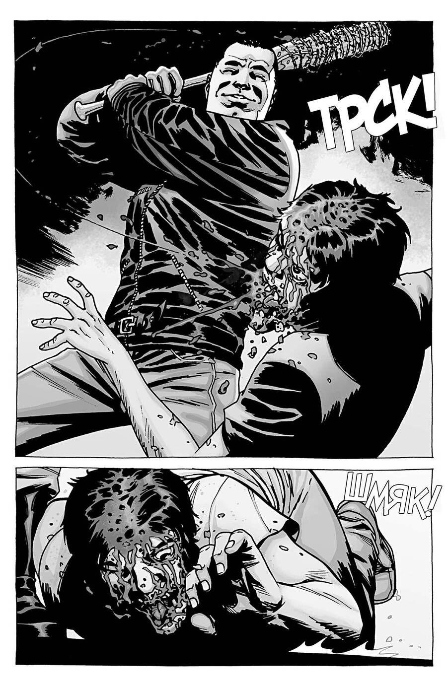 Роберт Киркман, Тони Мур «Ходячие мертвецы», 2014 г. / Грег Никотеро, Майкл Е. Сатраземис и Фрэнк Дарабонт, телесериал «Ходячие мертвецы», 2017 г. Рик ранит Нигана
