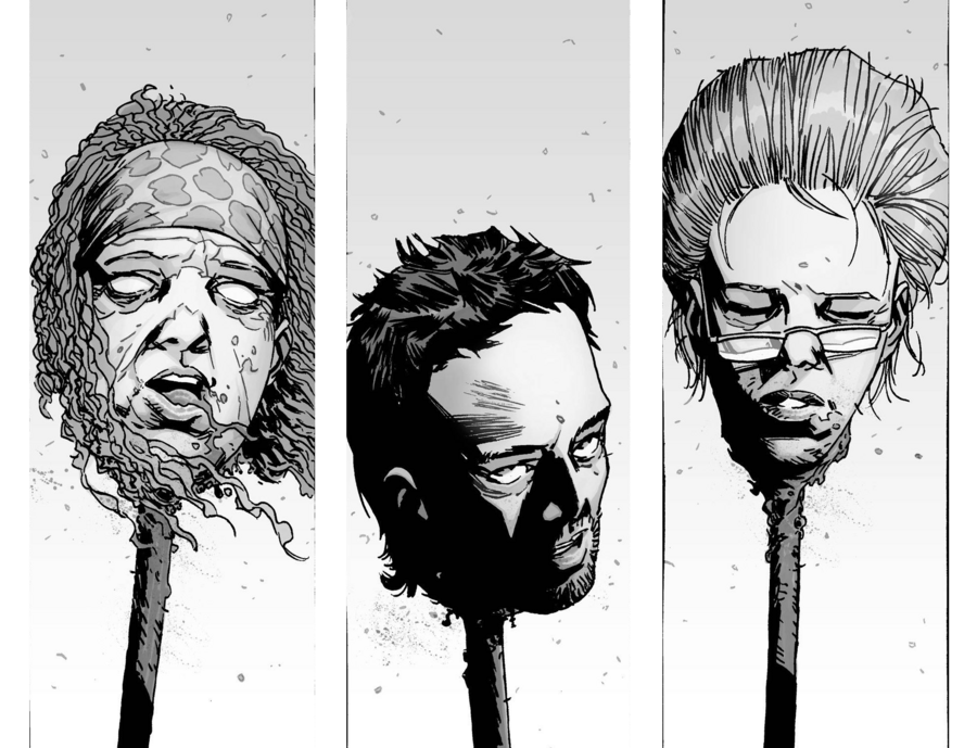 Роберт Киркман, Тони Мур «Ходячие мертвецы», 2015 г. / Грег Никотеро, Фрэнк Дарабонт, телесериал «Ходячие мертвецы», 2018 г. Головы на пиках