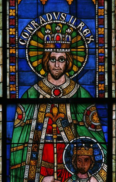 На втором витраже северного ряда окон нижнего яруса изображены, соответственно, императоры Отто I, Отто II, Отто III и Конрад (слева направо). Рядом с императором Конрадом стоит его сын, Генрих III