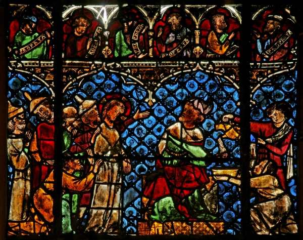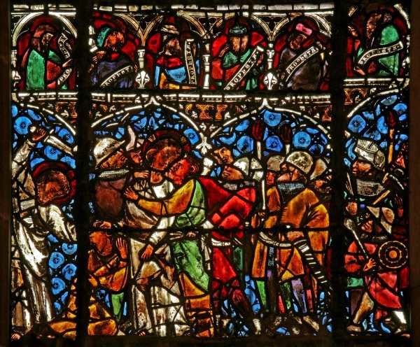 На витражах арки трифория с южной стороны изображен, в частности, предок Иисуса патриарх Иуда, персонаж Ветхого Завета, сын Лии и Иакова