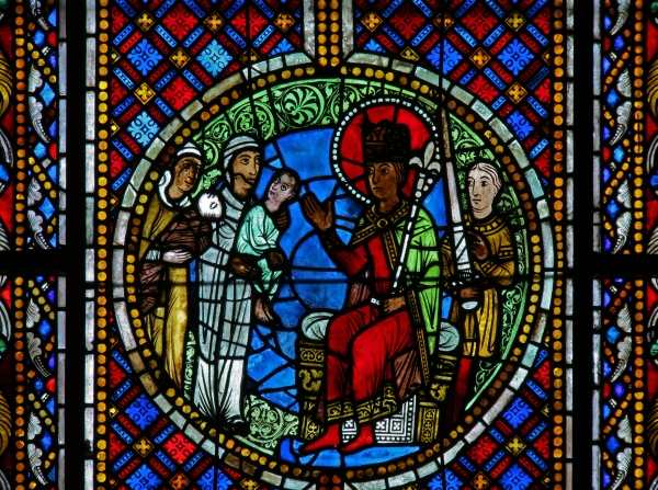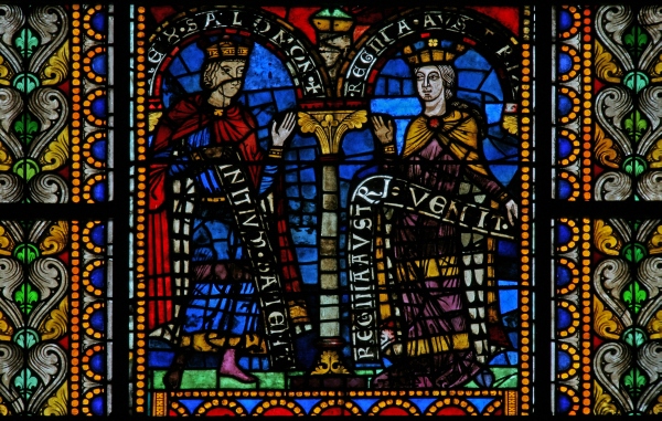 Витраж изображает молящуюся Богородицу, Иоанна Крестителя и евангелиста Иоанна, а также Соломона с царицей Савской и Соломона с царем Давидом.