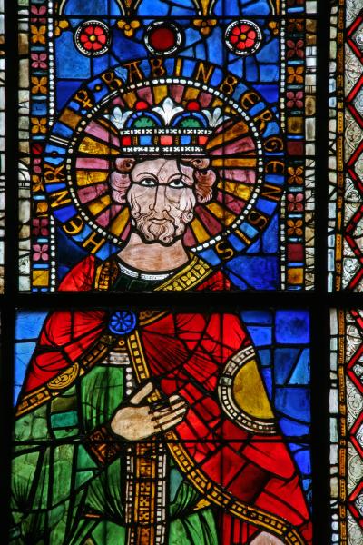 Самые старые витражи северного ряда расположены ближе к входу (то есть дальше всего от хора). На самом первом витраже, если считать от входа, изображены Генрих I Птицелов, Фридрих I Барбаросса и Генрих II Святой. Четвертое окно, вероятно, занимал витраж с изображением Оттона I Великого.