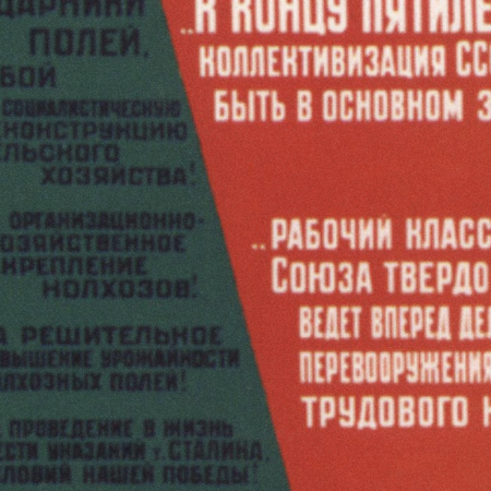 Яркие понятные лозунги, большие, тяжелые буквы — формируют яркую встречу с «утопией», в которой нет места фрустрации и неопределенности. Советский плакат демонстрирует очень конкретное будущее, которое зритель должен захотеть приблизить.