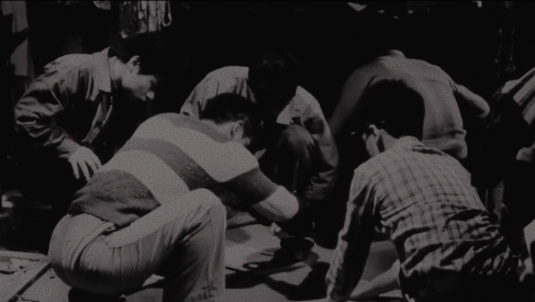 Многие сцены фильма разворачиваются в тесных цехах с узкими проходами и низкими потолками, где рабочие вынуждены двигаться так близко друг к другу, что их тела постоянно сталкиваются и трутся друг о друга. Режиссер намеренно создает ощущение «зажатости» — использует плотное кадрирование и низкие планы. Пространство не дает возможности героям фильма двигаться свободно ни буквально, ни социально. Такие постановки кадра будто гласят, что свободы нет, потому что устроена такая система, которая не позволяет ее допустить.