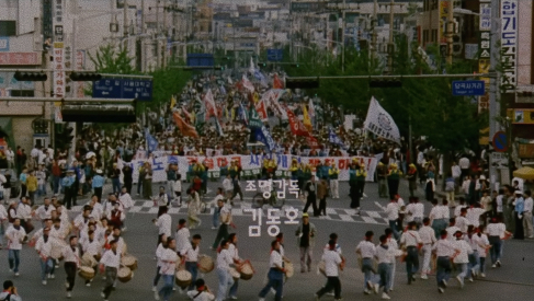 Интересно то, что в фильме присутствует чередование черно-белого и цветного изображения, что создает двойственное восприятие происходящего: память и реальность, документальность и субъективность, политическое решение и повседневность. Режиссер будто подчеркивает, что история рабочего движения не просто показана в фильме, а «переживается» заново. Очень примечательны моменты, когда нарушается граница между цветными и черно-белыми сценами, одно переходит в другое, будто прошлое и настоящее сталкиваются. Таким образом, Пак Кван-су демонстрирует, что эта история рабочих еще не закончилась, прошлое вторгается, влияет на настоящее.