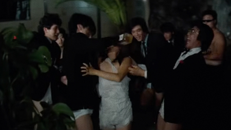 Сцены шикарной вечеринки создают контраст между миром маргиналов и высшим обществом. Главные герои оказываются физически и символически окружёнными людьми, чья власть и привилегии проявляются через простор, свет и аккуратные костюмы гостей.