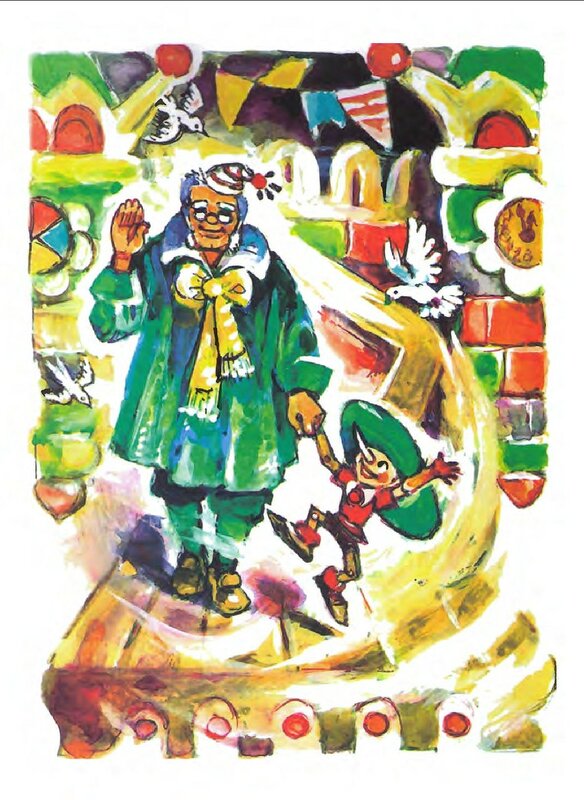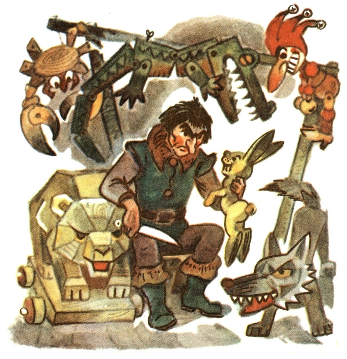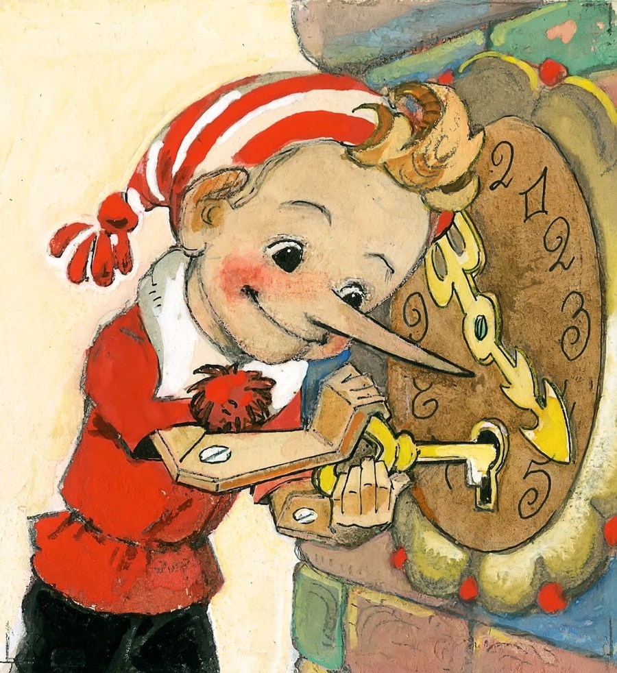 Выразительный образ любопытного деревянного мальчика в полосатом колпачке, художник взял со своей дочери. На тот момент ей было 5 лет.