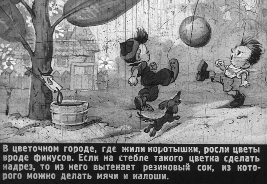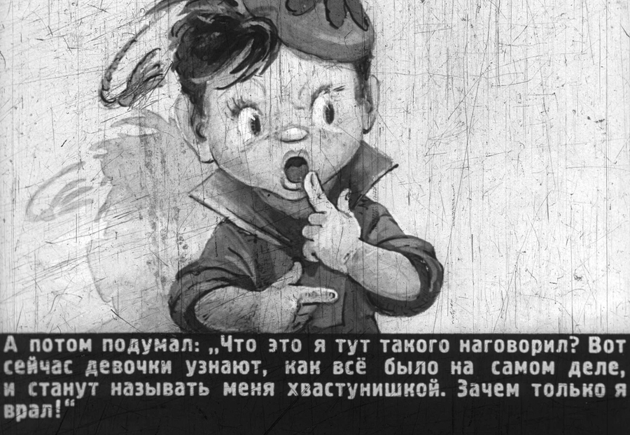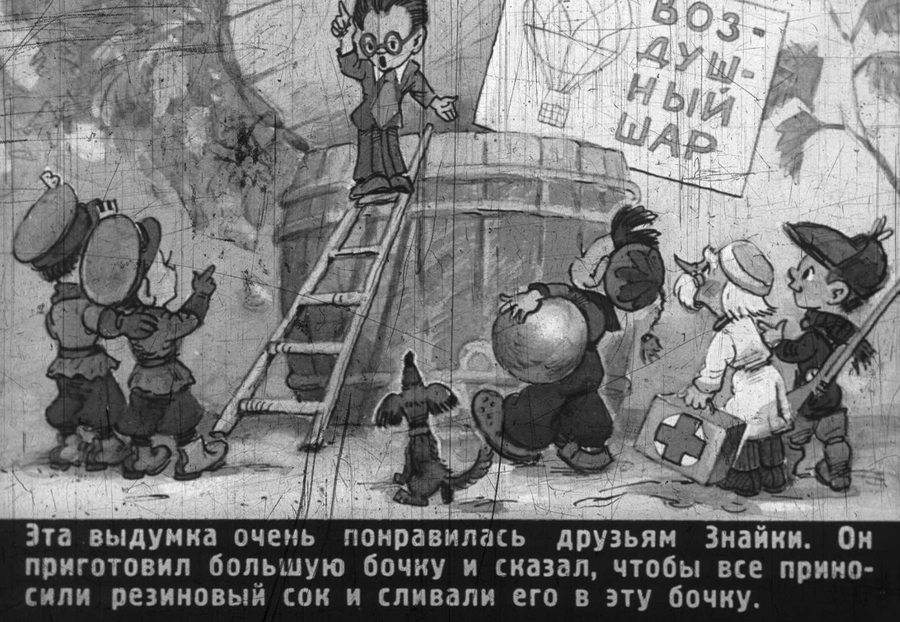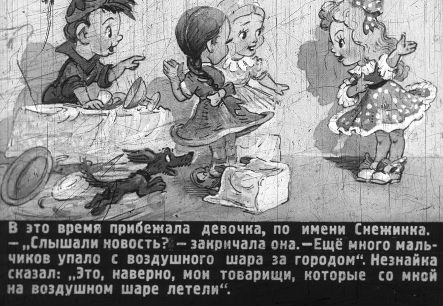Рисунок был создан при помощи акварели. Всего было создано 80 картинок, превращенных диафильм.