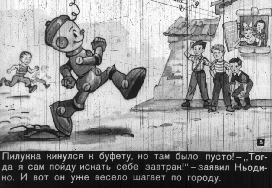 В данном диафильме повесть идёт об учёном, который соорудил себе механического мальчика из чайника, печных труб и утюгов.