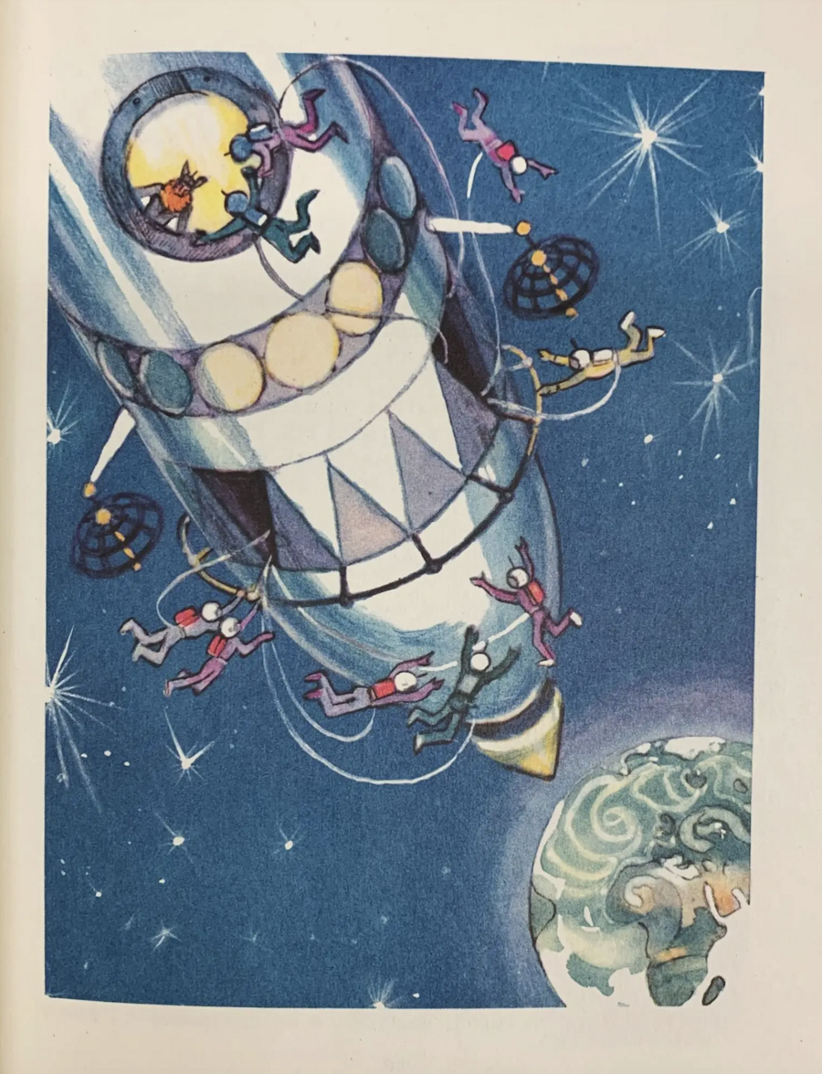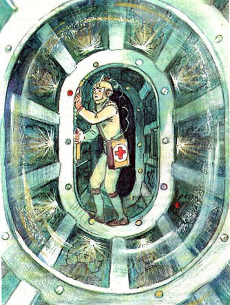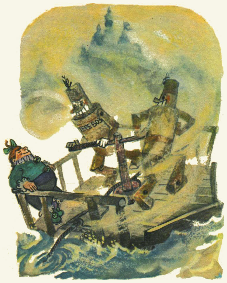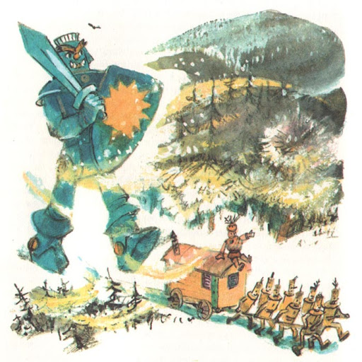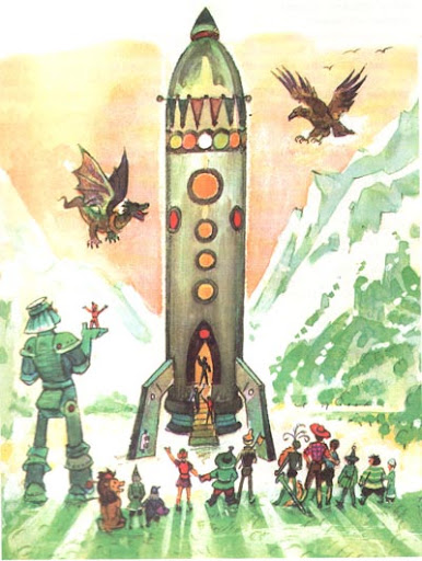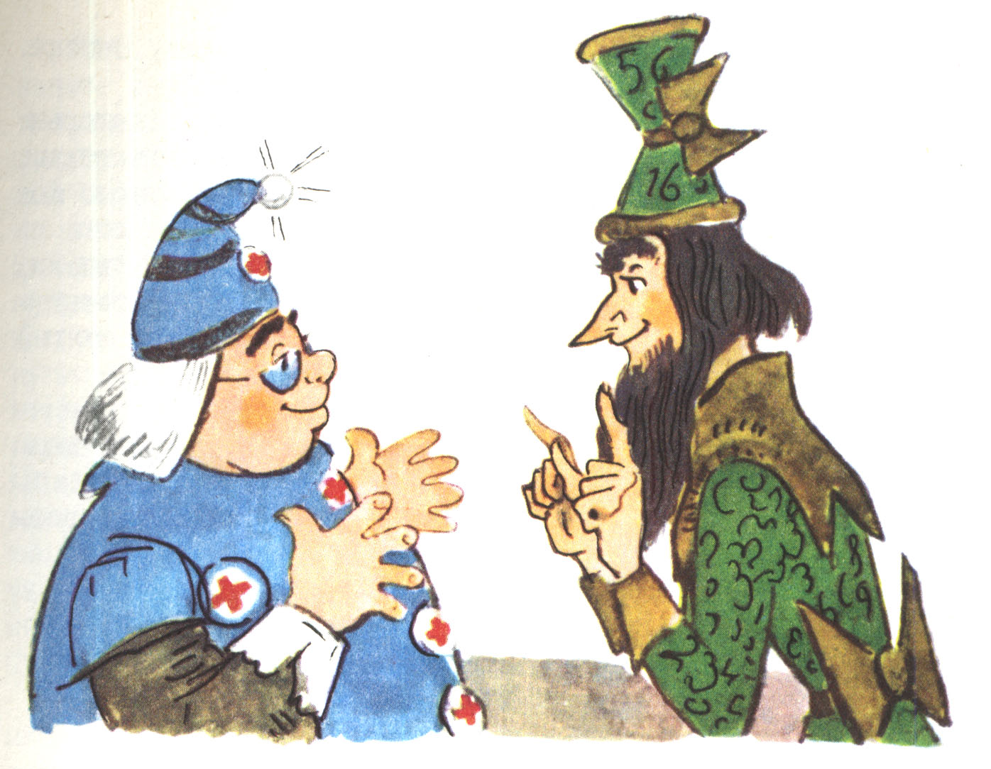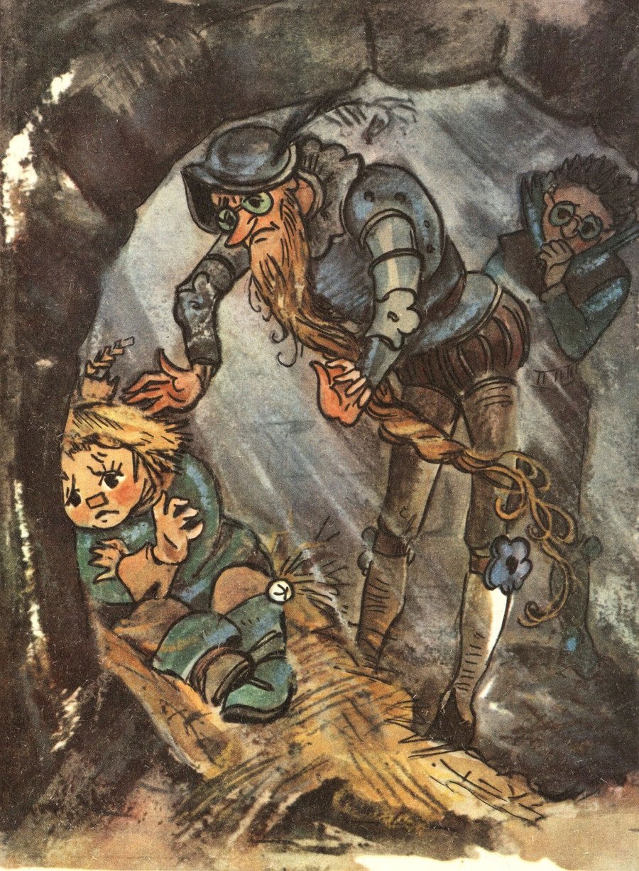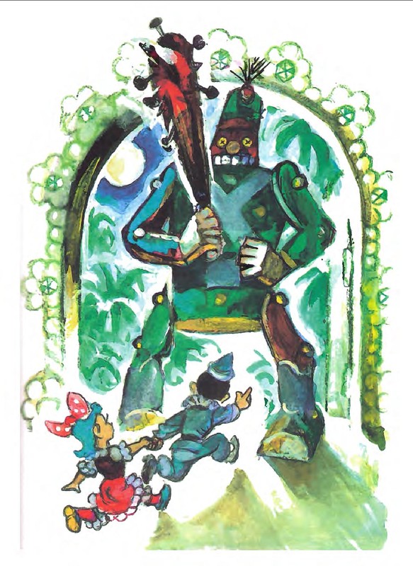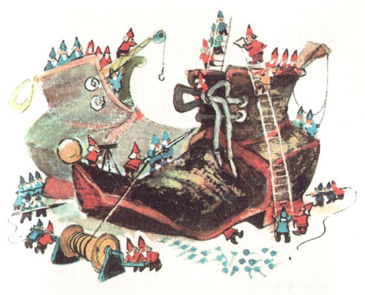 Леонид Викторович Владимирский достаточно интересно и детально показал город маленьких гномов. Городок напоминает мир маленьких человечек из сказок Н. Носова в изображении Лаптева.