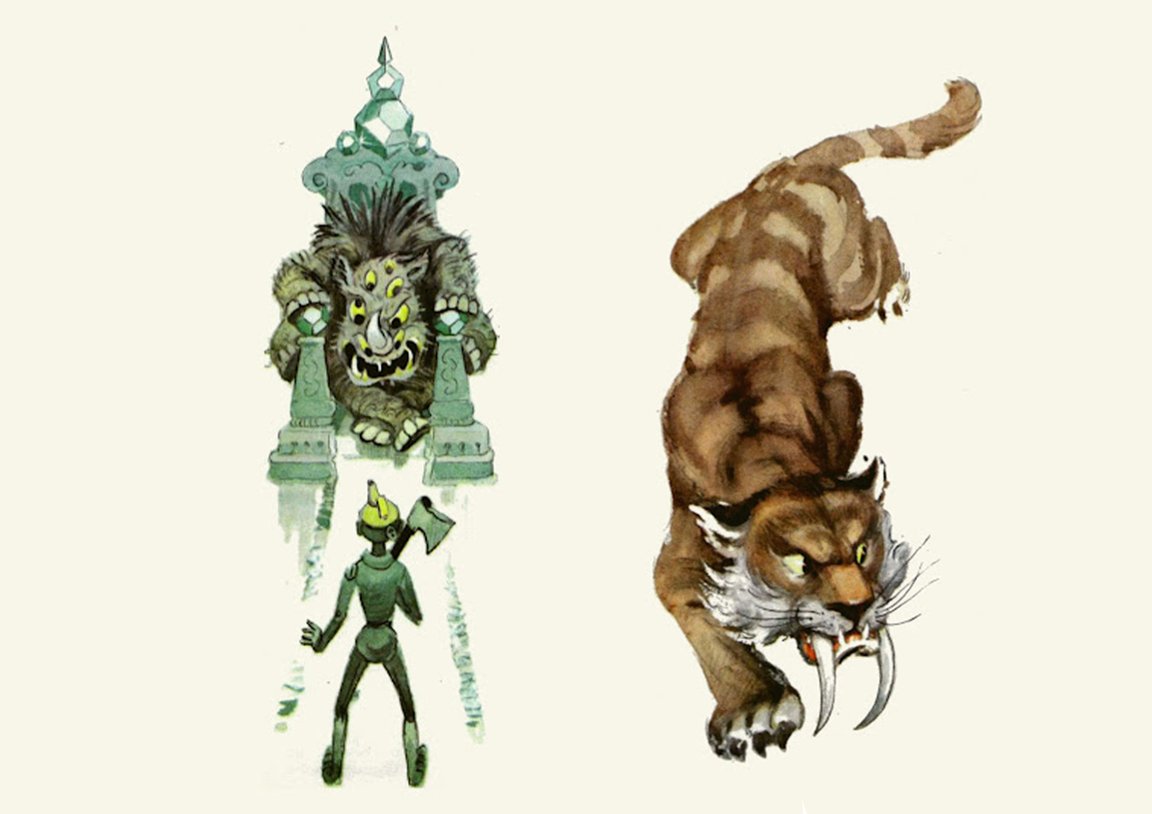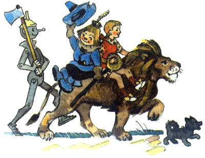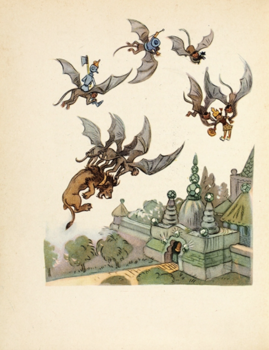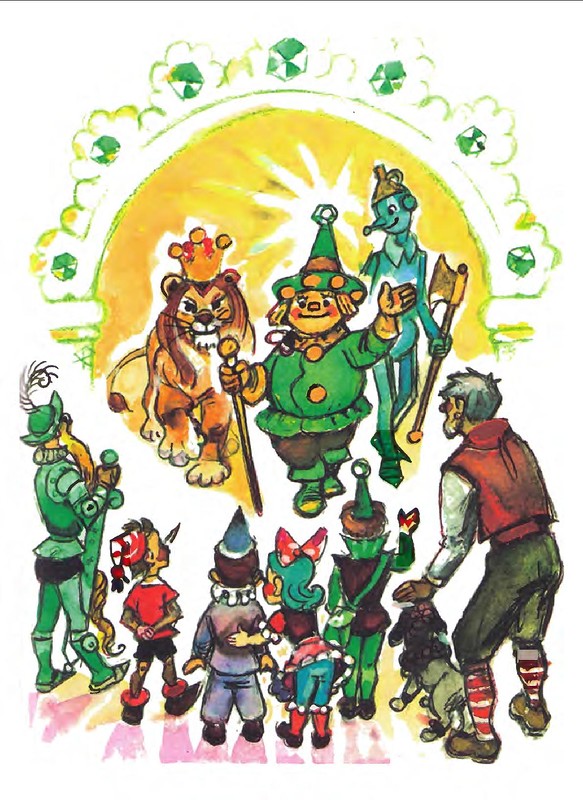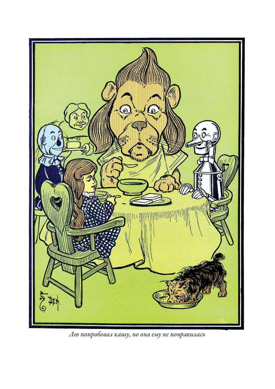 На разворотах книг можно увидеть Тотошку (пса Элли), Трусливого Льва, саблезубых тигров, летающих обезьян, гигантских пауков и многих других интересных персонажей.