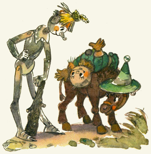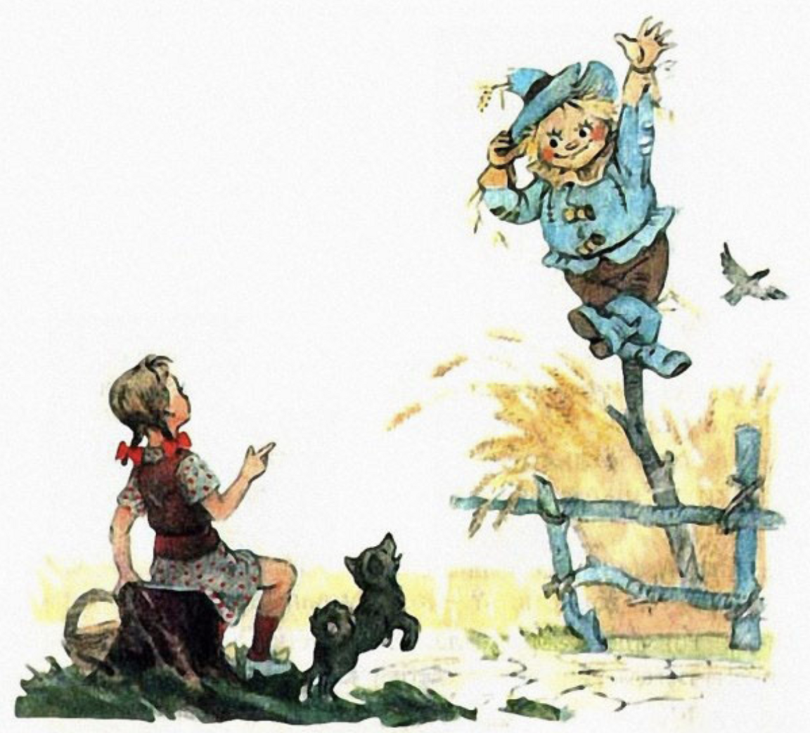 Страшилу художник решил не рисовать страшным, а сделать его добрым и симпатичным. Он был любимым персонажем художника в этой сказке.