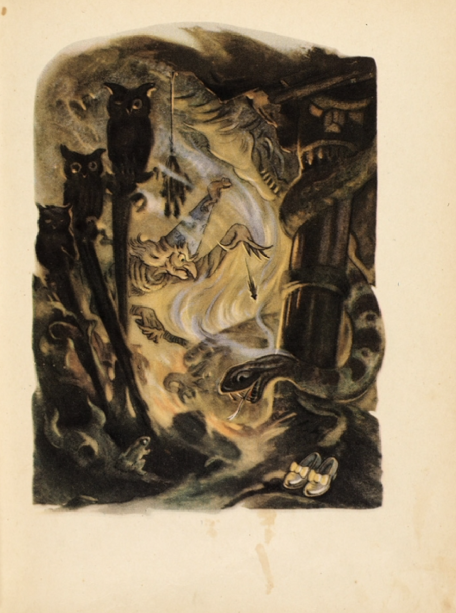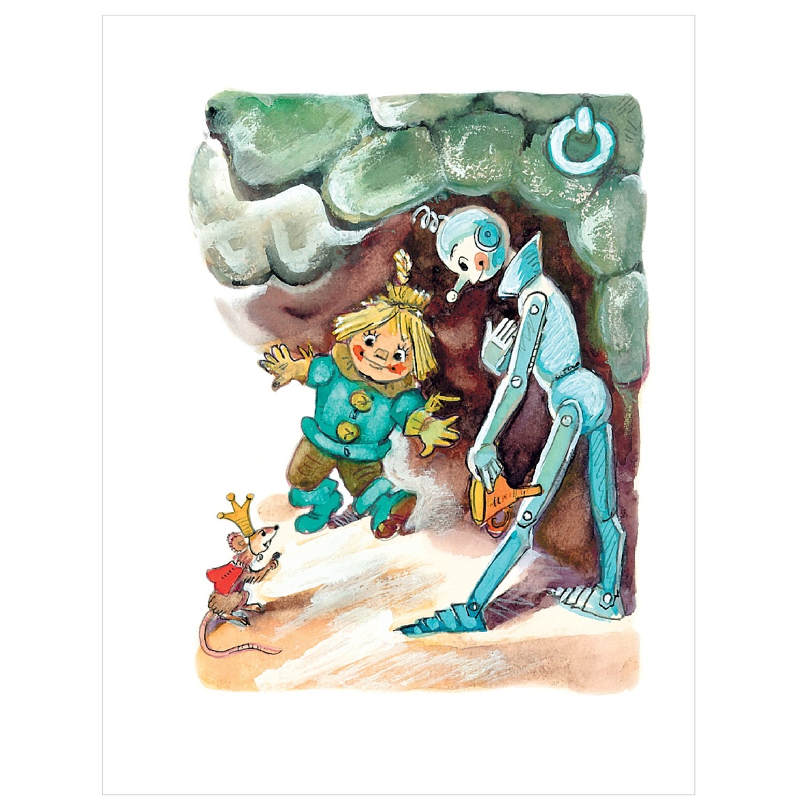 Он нарисовал 12 полосных иллюстраций и несколько десятков мелких рисунков для первой книги серии Волкова, а впоследствии иллюстрировал и все остальные истории про Волшебную страну.
