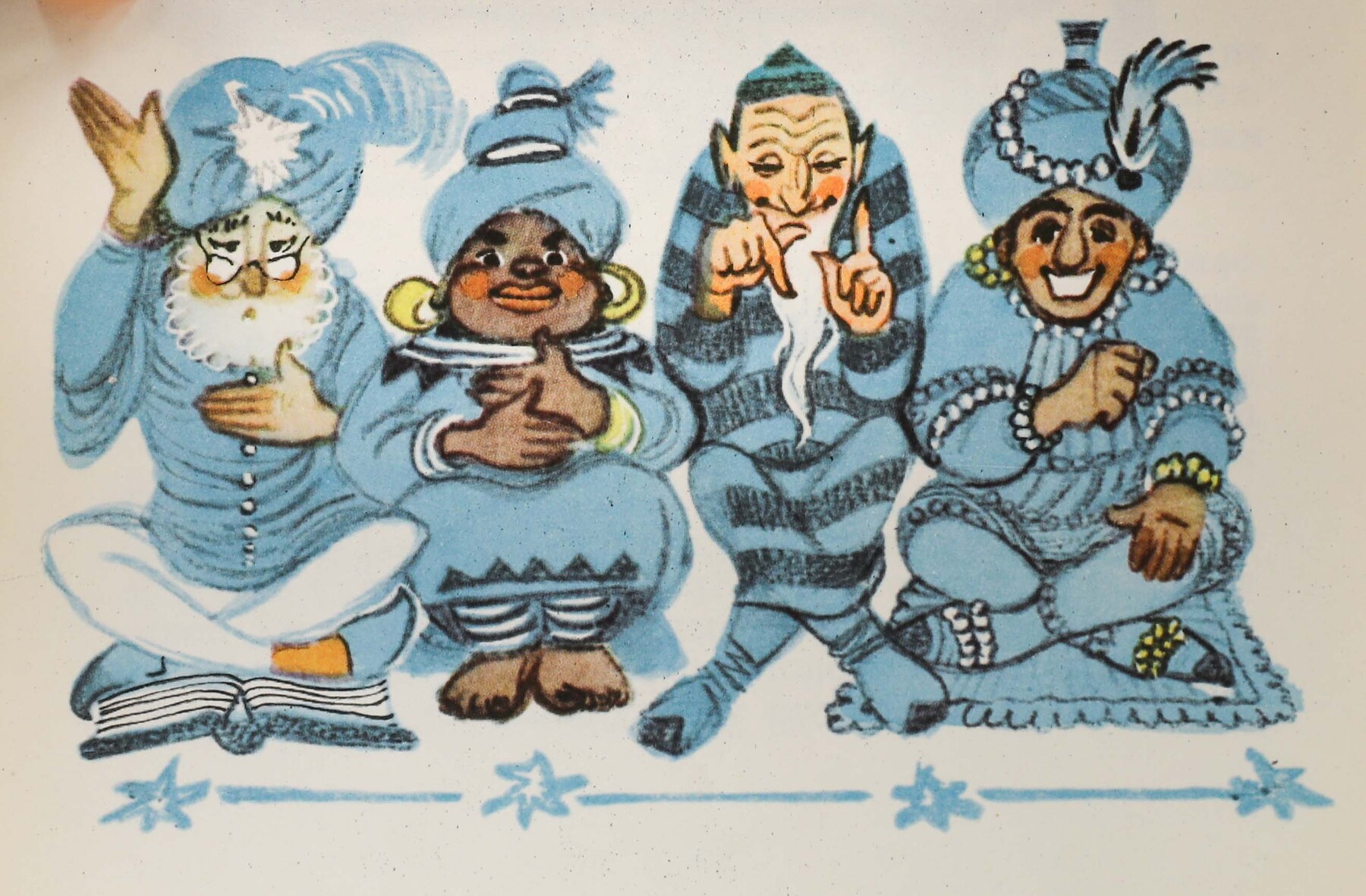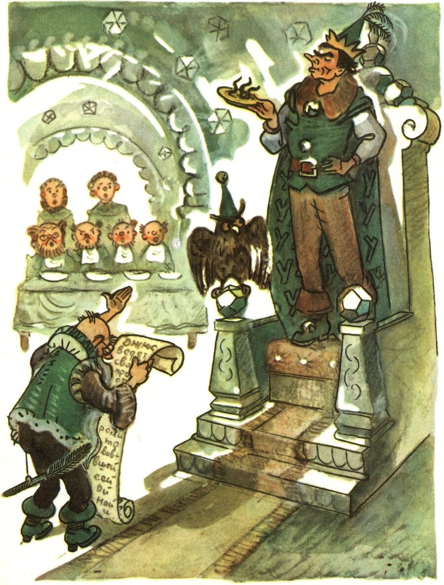 Например, в сказке «Семь подземных королей» Волков изначально планировал двенадцать королей, а Владимирский настоял на семи, чтобы одеть их в костюмы разных цветов радуги.