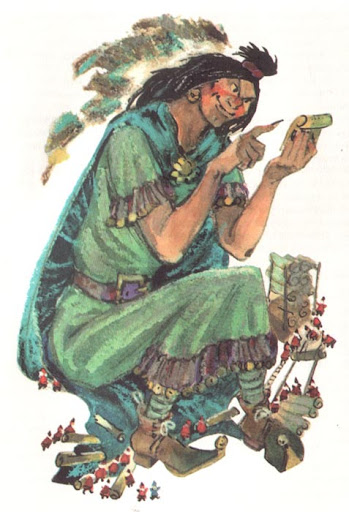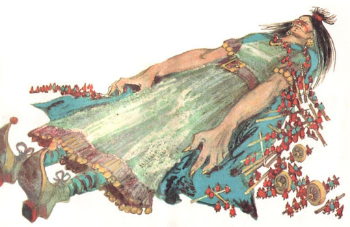 Могущественная и великая колдунья Арахна из пятой книги Волкова нарисована с крупными и массивными чертами лица, длинными черными волосами и смуглой кожей.