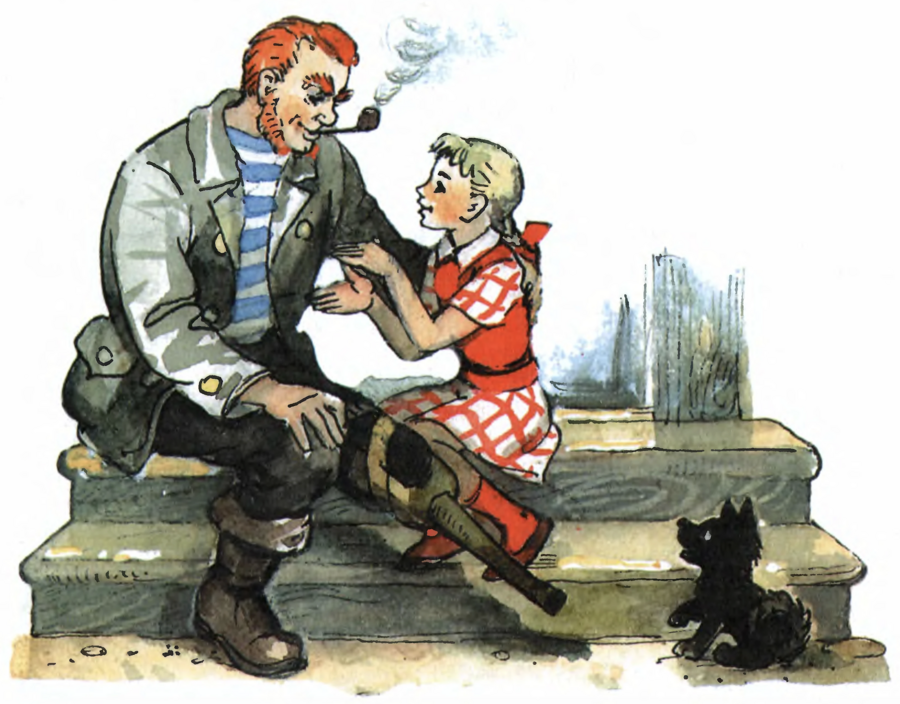 Владимирский дядю Элли изобразил широкоплечим и крепким, средних лет. У Чарли Блэка отсутствуйте левая нога ниже колена, вместо неё деревяшка. У него длинные мускулистые руки, он опытный путешественник, мастер на все руки.