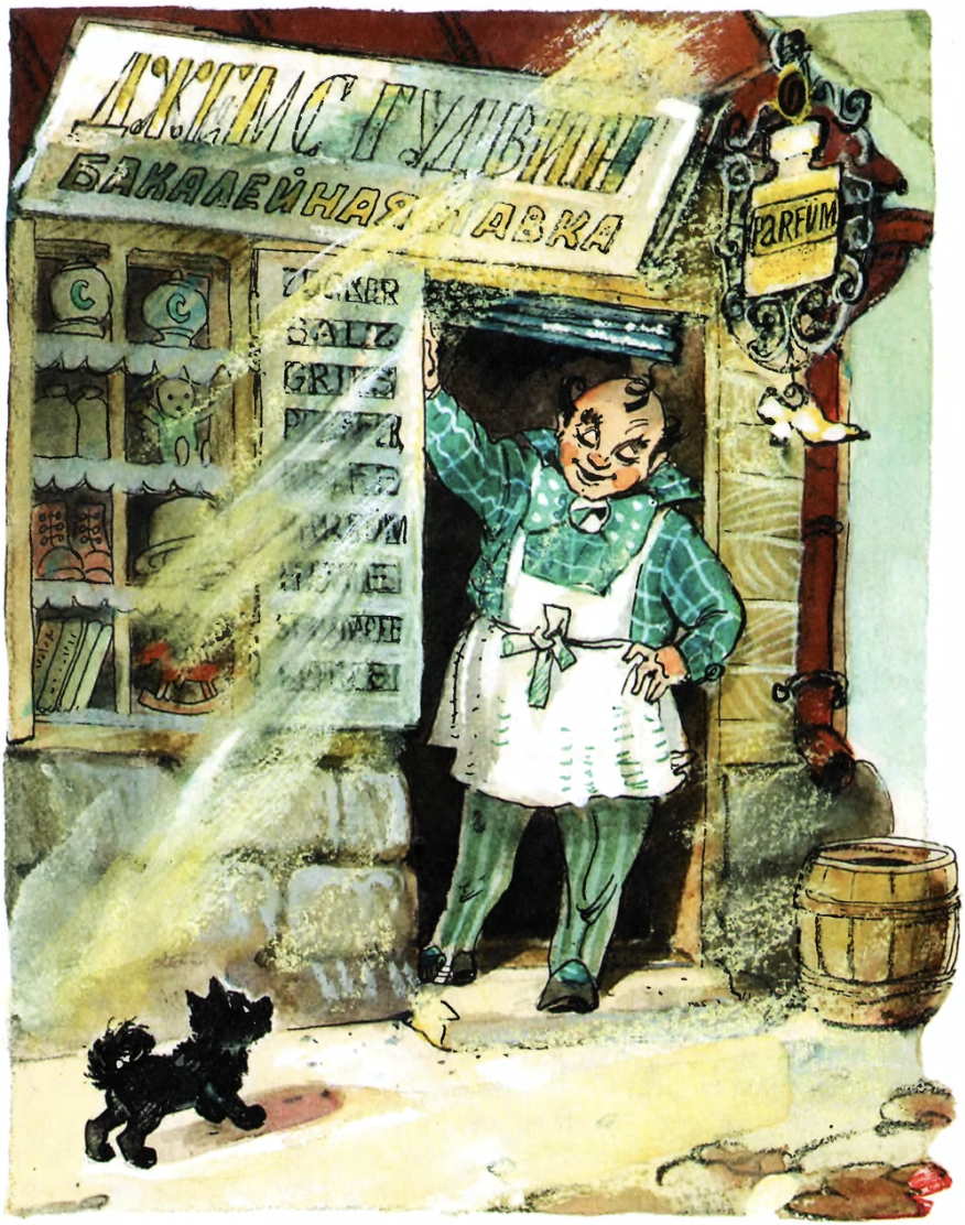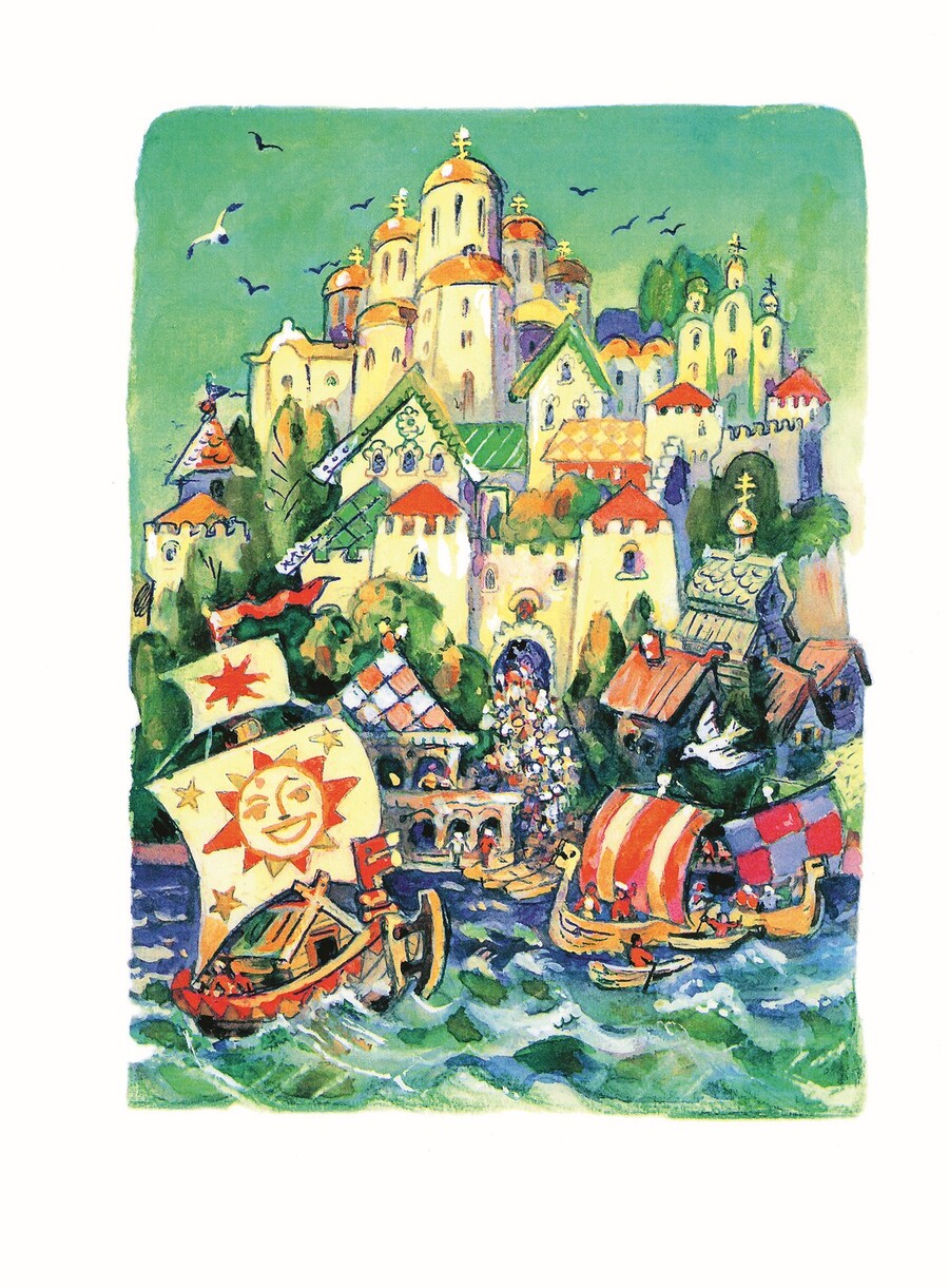 Владимирский достаточно красочно и детально прорисовывал акварелью каждый фон города в книгах Александра Волкова.