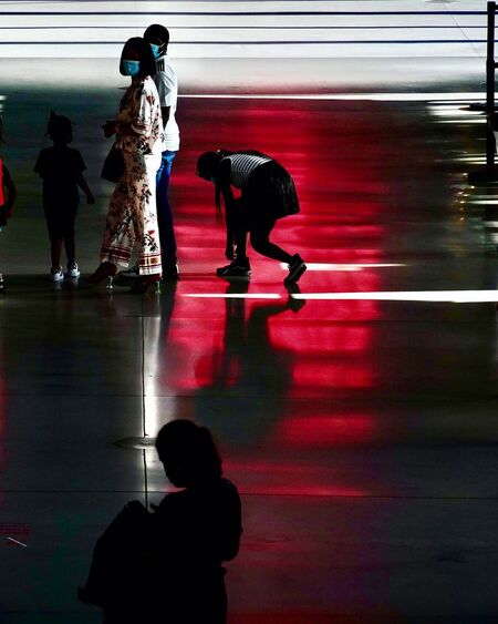 Так, один из ясных приемов — специальное выделение геометрических форм и повторяющихся элементов: кругов, треугольников, линий, которые увязывают хаотичное движение в упорядоченный узор. Паттерны из архитектурных деталей, расходящихся брусчаток, теней, синхронных жестов людей в толпе — все это создает пластический ритм и графическую структуру. При этом Пинхасов часто «вырезает» из общего плана фрагменты с идеальным ритмом, демонстрируя сложный баланс между хаосом и контролем. Этот визуальный ритм воспринимается почти как музыка — без слов, но с внутренним движением, которое волнует и завораживает.