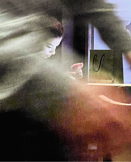 Одна из техник, которую Пинхасов широко применяет, — использование отражений и преломлений света на поверхностях витрин, лужах и даже запотевших стеклах. Благодаря этим приемам пространство усложняется, возникает многослойность, которая заставляет зрителя искать границы между реальным и иллюзорным, переходить от одних планов к другим и воспринимать кадр как сложную визуальную структуру. Это свойство густо проявляется в его уличных снимках из серии «Москва» и «Токио», где реальность буквально расщепляется на зеркальные фрагменты и пересечения теней, создавая атмосферу загадочности и эфемерности.