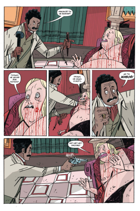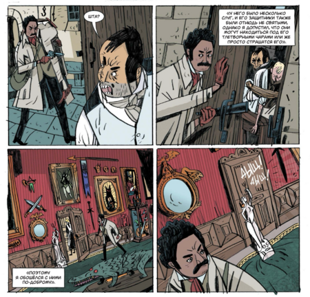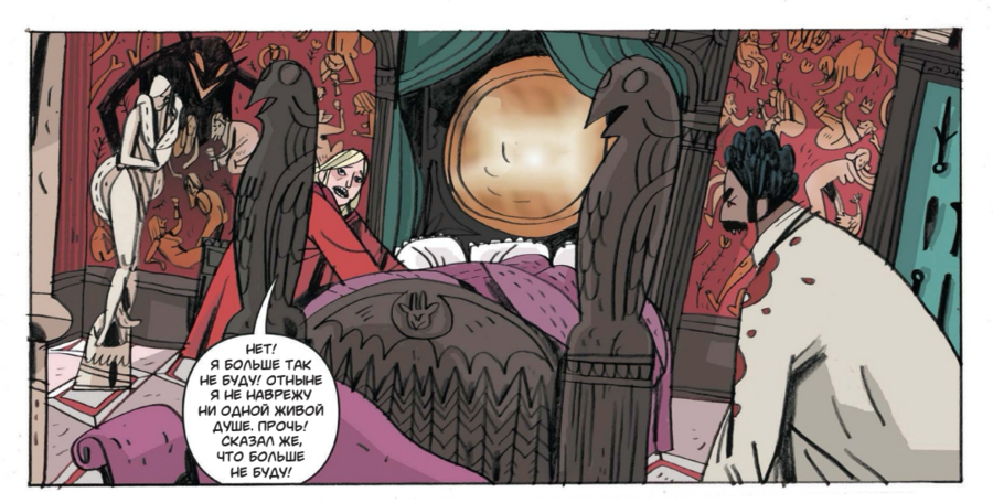 Во-вторых, редкий для хоррора баланс сдержанности и гротеска: Миньола приносит стройность, «архитектуру» кадра и чувство паузы, а Джонсон-Кадуэлл — подвижность линии, театральность поз и живую грязноватую фактуру, которая не даёт книге стать слишком «глянцевой». В-третьих, доверие и творческая дистанция.