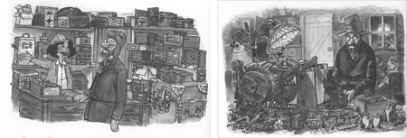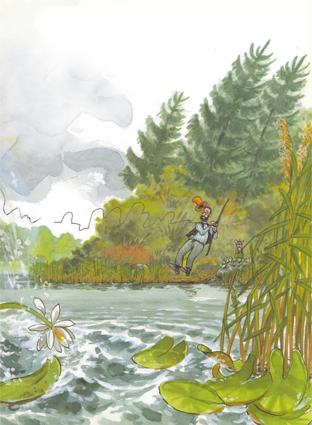 Нурдквист свободно использует эти два приема как по отдельности, так и смешивает их на одной иллюстрации, заставляя нас проследить всю траекторию персонажа.