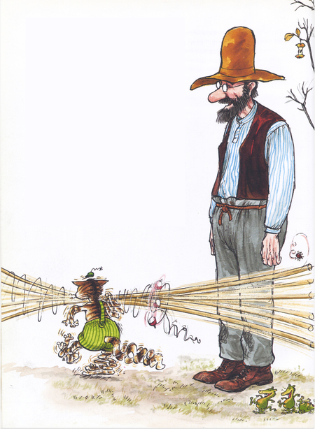 Любой сюжет у Свена Нурдквиста появляется сначала в рисунке, а уже затем оформляется в словах. Творчество Нурдквиста — это прекрасный пример того, как иллюстрации могут стать не просто дополнением текста, а самостоятельным инструментом, формирующим эмоциональное и интеллектуальное восприятие читателя