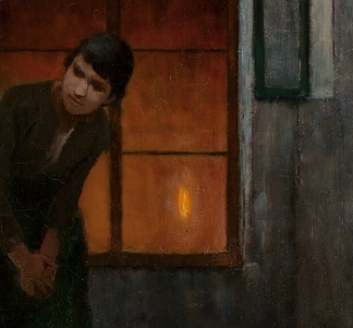 «Убийство в доме», фрагмент, Якуб Шиканедер, 1890 / «Вечер (сидящая в помещении пожилая женщина)», фрагмент, Якуб Шиканедер, 1897