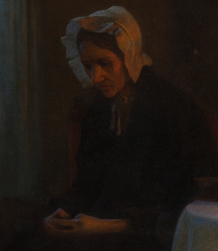 «Вечер (сидящая в помещении пожилая женщина)», фрагмент, Якуб Шиканедер, 1897