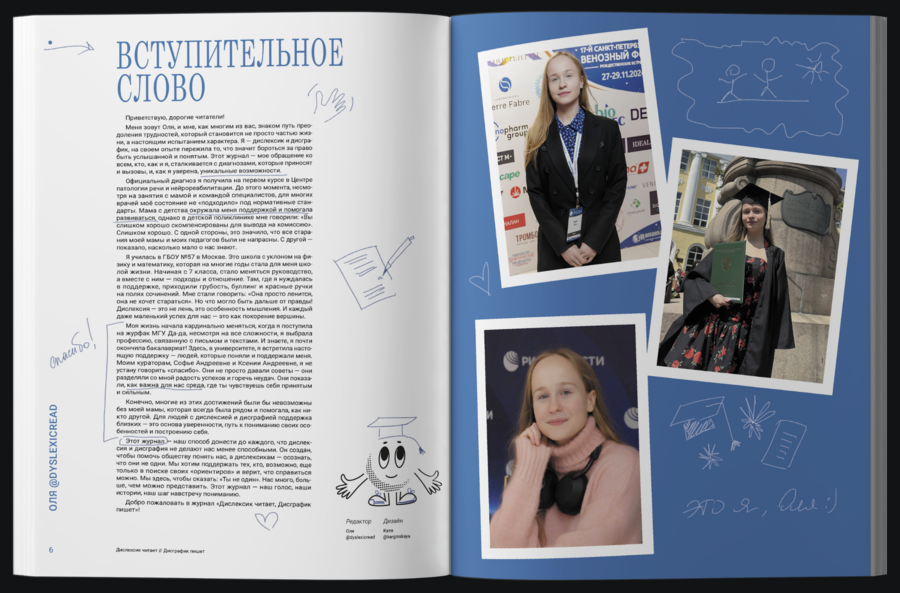 В журнале можно найти, когда и кем впервые был описан термин «дислексия», полезные игры на каждый день, истории других людей. Читатель сможет понять, как помочь себе или ребенку, поймет суть заболевания и найдет вдохновение.