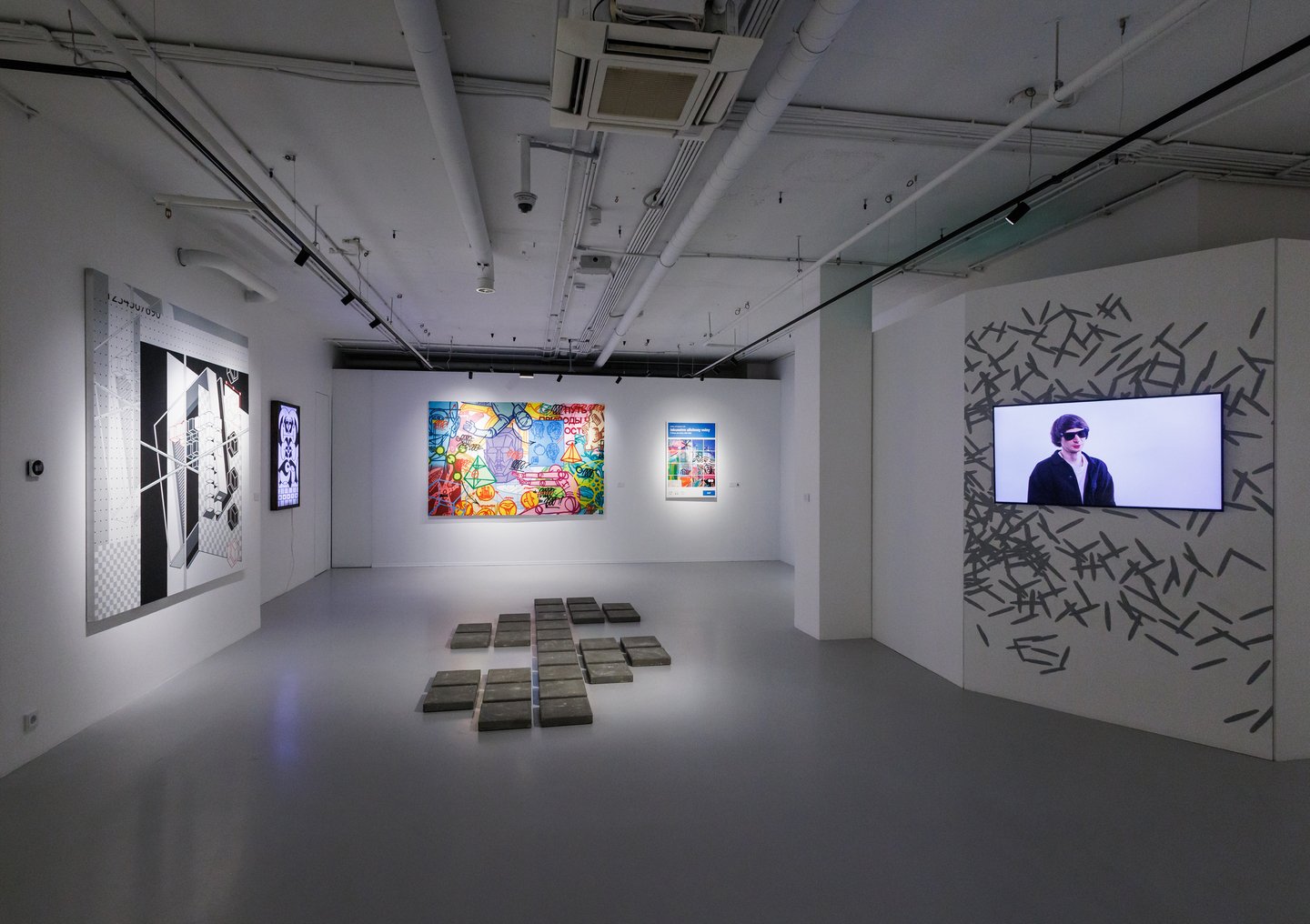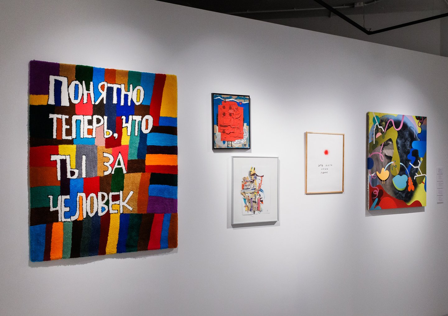 Виды экспозиции коллекции Фонда Ruarts с работами Егора Giwe, 0331c, Гриши, Алексея Партола, Максима Има, 404, Сергея Xeato, Ивана Найнти, Владимира Абиха, Никиты Dusto
