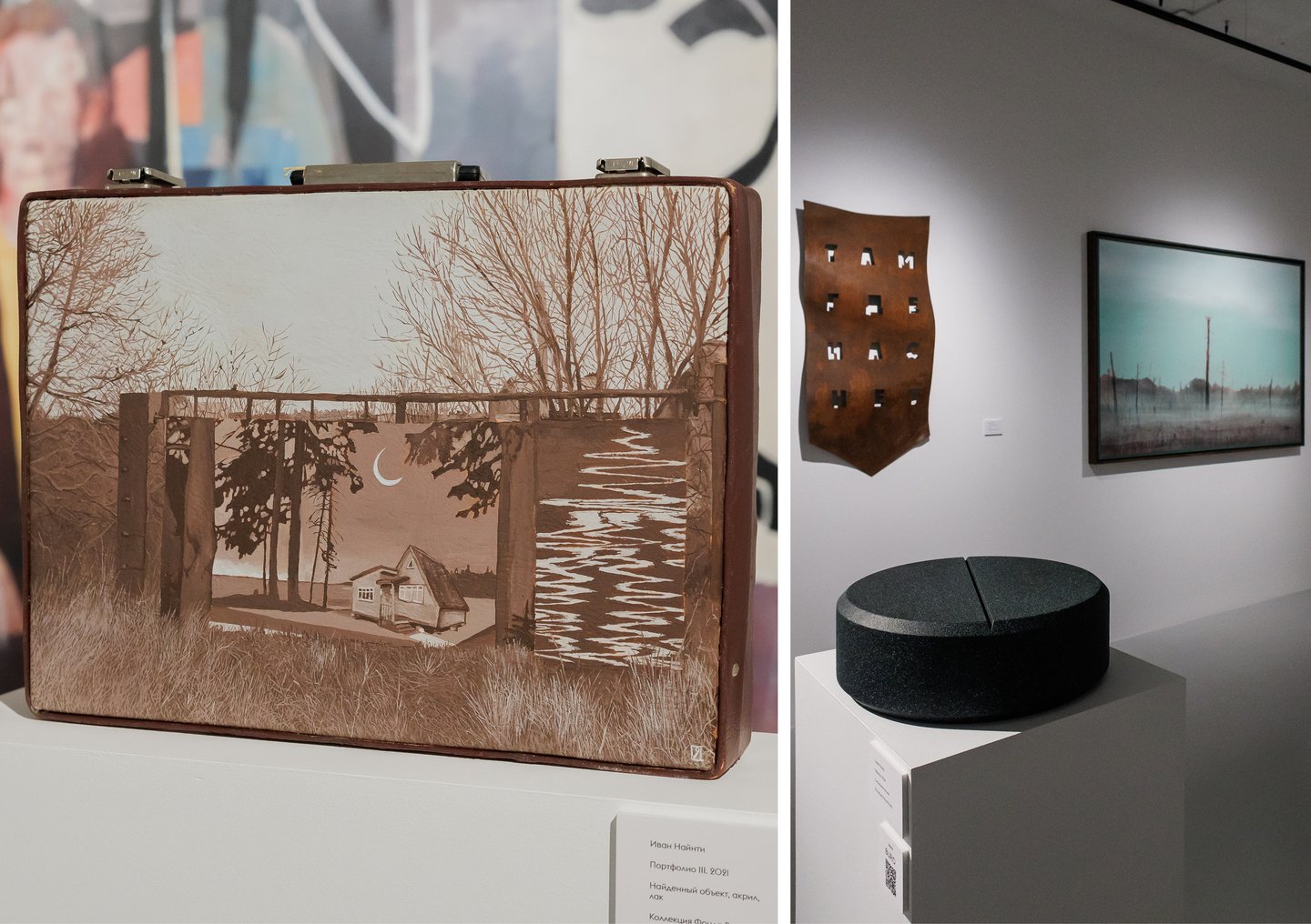 Вид экспозиции коллекции Сабины Чагиной с работами Тимура Humor («Без названия», 2024) и Ромы Peeks («Хорошо и грустно», 2023)