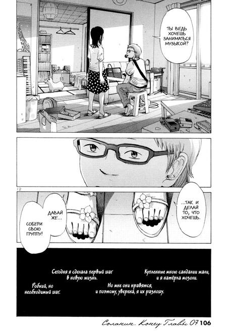 Другую реальность изображает Инио Асано в «Соланин». Эта история о цикличности жизни, монотонности, разочаровании и просто жизни людей, чьи судьбы схожи с миллионами других.