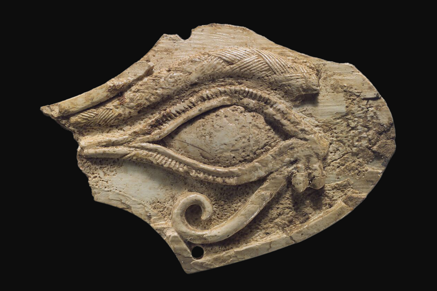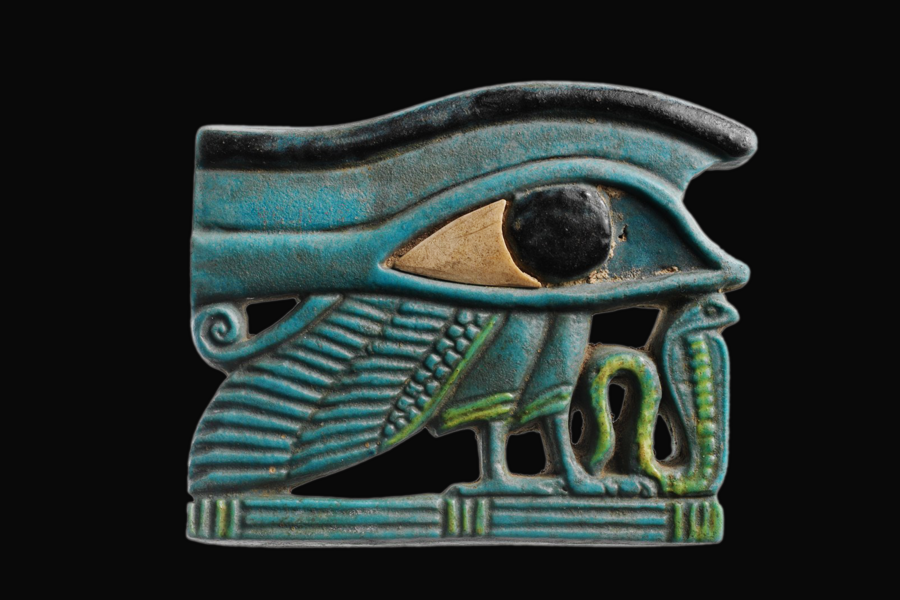 Неизвестный автор, барельеф с изображением двух Глаз Гора, ок. 1300 гг. до н. э. — https://www.prints-online.com/eye-horus-false-door-senenmut-egypt-14332540.html%D0%A4%D0%B0%D0%B9%D0%BB:Wedjat_eye_Amulet_MET_DP164714.jpg