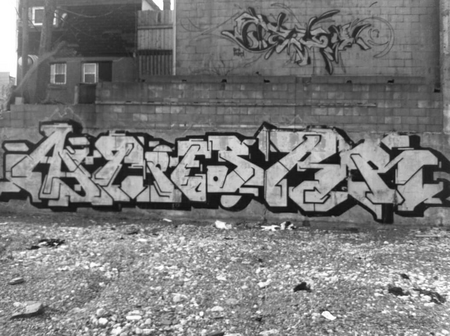 Во второй половине ХХ века буква стремительно геометризируется: модернистские идеи рациональности и оптической чистоты соединяются с агрессивной визуальностью рекламы и корпоративной графики, из-за чего литеры тяжелеют, уплотняются и теряют органическую пластику, превращаясь в конструктивные объекты. В дизайне 1930–1970-х это проявляется в интересе к плотным, модульным структурам, где штрихи функционируют как балки, а форма подчинена несдвигаемому каркасу вертикалей и горизонталей. Такие буквы основаны не на жесте, а на механическом мышлении, близком к промышленному проектированию: они обладают монолитной массой, устойчивой силуэтностью и минимальной степенью пластичности. Именно эта конструктивная логика — когда буква работает как структурный элемент, а не как след движения руки — создаёт основу для жёстких граффити-стилей, которым требуется максимальная компактность и визуальная прочность, чтобы выдерживать конкуренцию городской среды.