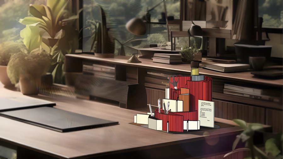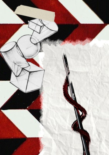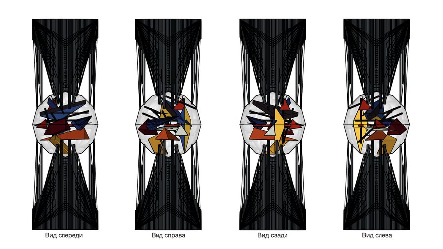 Центральным элементом композиции является сфера — символ целостности, космоса, завершенности, что перекликается с тягой Поповой к гармоничным, замкнутым формам в ее супрематических работах.